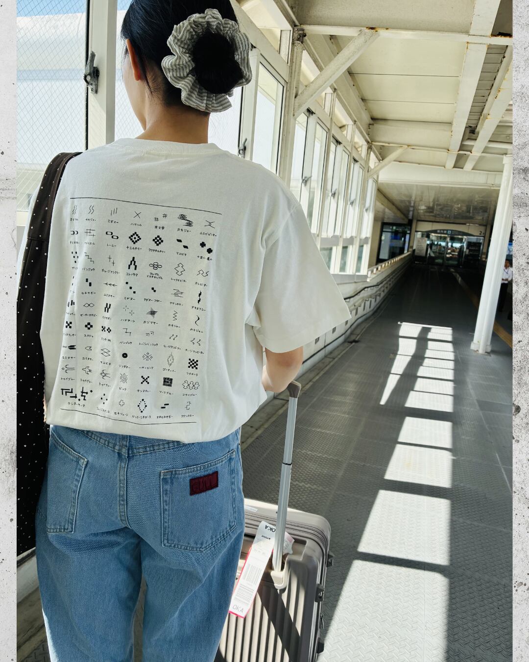 丸正織物工房らしい、絣柄を紹介したTシャツ