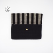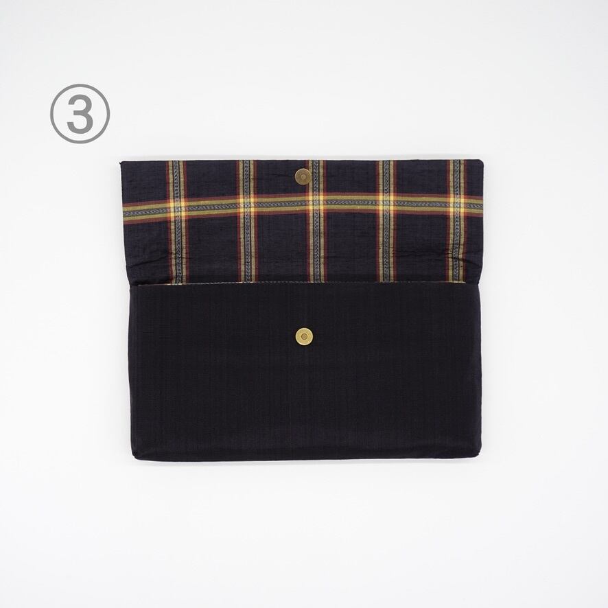 かすりのクラッチバッグとかすりモチーフピン
