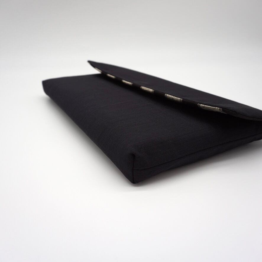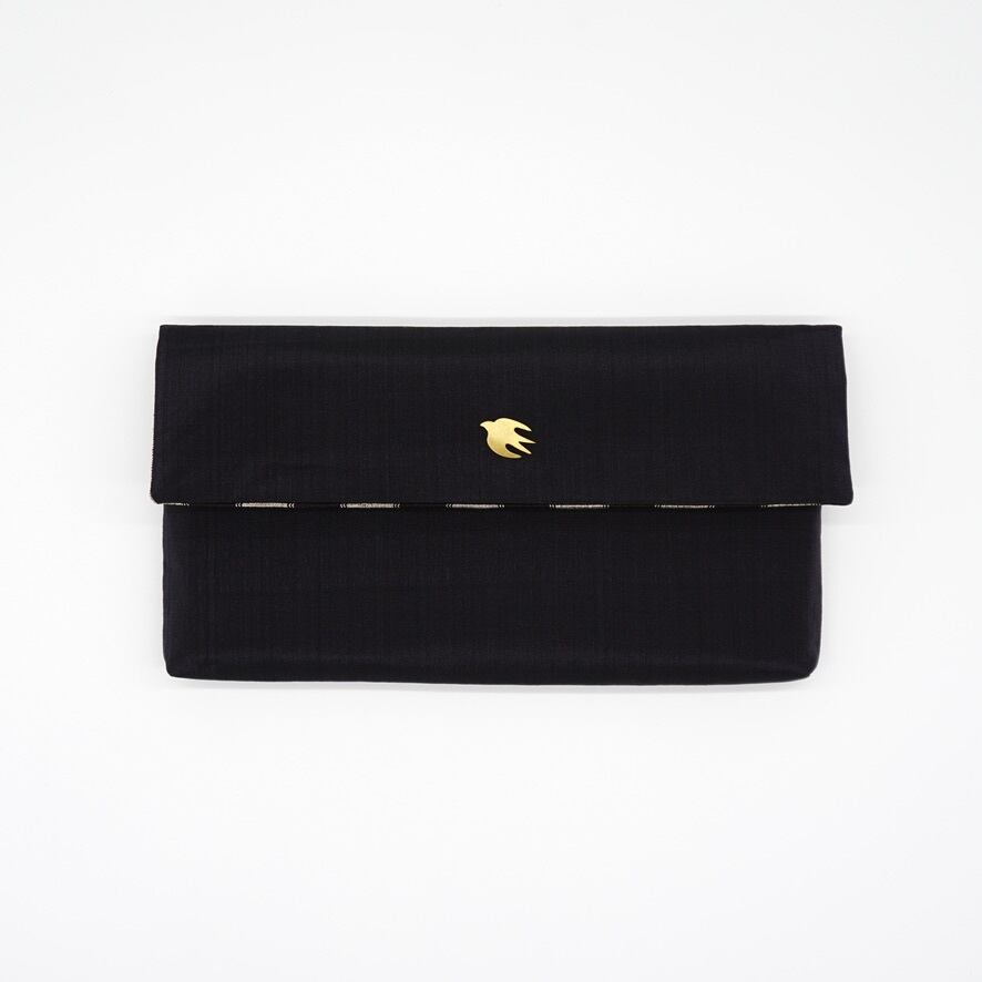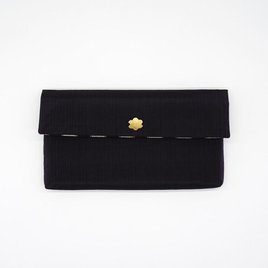 丸正織物工房の琉球かすりのクラッチバッグにatelier souの真鍮のピンを合わせたコラボ商品です。
