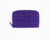 沖縄の伝統工芸品「琉球絣」と、鹿革にうるしで表現する山梨の伝統工芸品「甲州印伝」とのコラボ商品。この柄が織れるようになると一人前と認められる、琉球絣の伝統柄「ナナカシウトゥシ」がモチーフ(漆部分)。